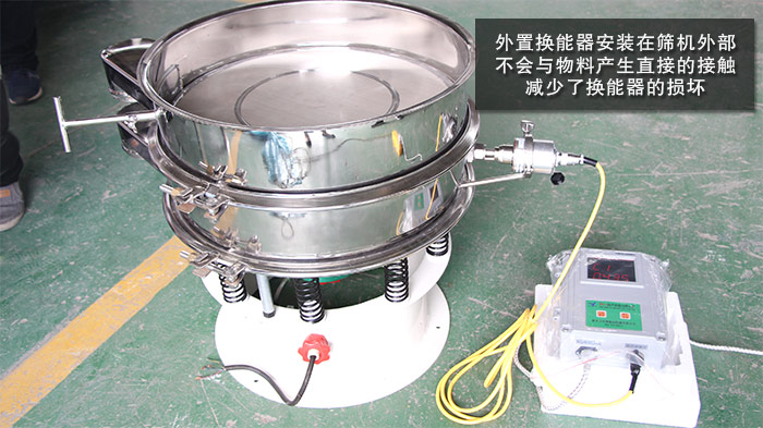 外置換能器和篩框接觸緊密密封效果好,可以有效的避免物料進(jìn)入換能器從而影響使用壽命;
