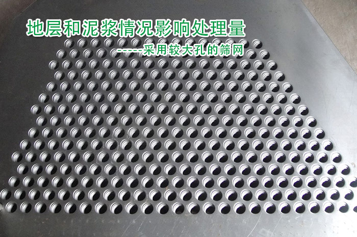 由于鉆井液中添加的藥物未能充分溶解,糊在篩網上,此時會發生嚴重跑漿的現象。應當等藥物充分溶解后再使用,或者采用較大孔的篩網。另一種情況,當鉆到松散的含砂巖層或流沙層時,砂粒容易卡在篩網孔中,造成篩堵現象。因此要試驗幾種不同目數的篩網來減少篩堵現象。