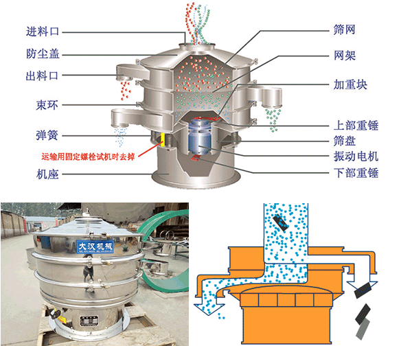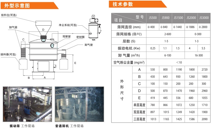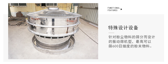 4、針對粉塵物料的篩分而設計的振動篩機型,高可以篩600目細度的粉末物料。