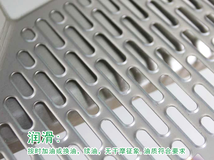 金屬網帶內外各滑動面、絲杠、齒條、齒輪箱、油孔等處無油污,各部位不漏油、不漏氣,設備四周地切屑、雜物、臟物機械工程師要清掃干凈;