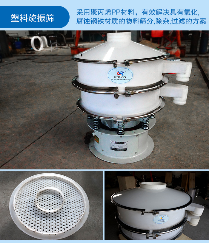 塑料篩粉機是采用聚丙烯PP材料,通過特殊加工工藝制作,用于滿足所生產物料有酸堿性、腐蝕性物料的篩分作業,在全國使用范圍內又稱為聚丙烯塑料篩粉機,pp塑料篩粉機,塑料化工篩粉機等,是目前有效解決具有氧化,腐蝕鋼鐵材質的物料篩分,除雜,過濾的方案,并且確保了物料在篩分過程中不會變質等。